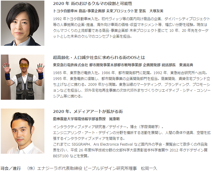 都市の巨大化、情報の複雑化によって、「人と街・人と人との隔たりが拡大し、コミュニケーションが欠落するようになったのではないか」という認識のもとで、今回講演者それぞれの立場から、人と人、街とをつなぎフレンドリーにしていくOS[オペレーションシステム]の必要性と可能性について、議論する。