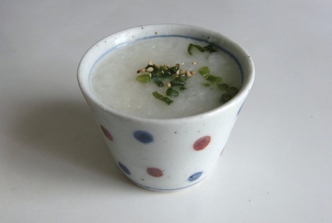 スタッフがお粥を入れてみたときの写真。