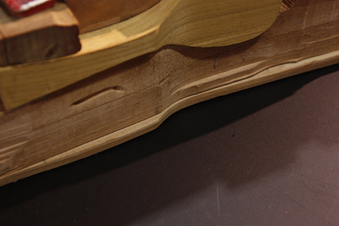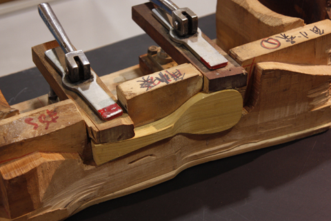 木取りしたものを治具に装着し、下部にあるガイドと呼ばれる部分に機械を沿わせて削る事で、
