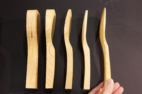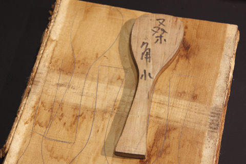 型を使用し、鉛筆で木取りする為の線をかきます。