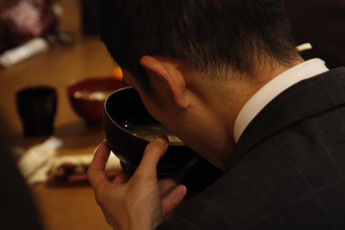 話しを聞いた後に、使う器、いただく料理は格別。吸い付くような口当たりは漆器ならでは。よさを実感します。