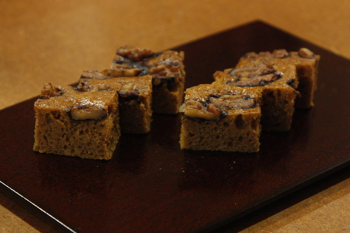 まずは、漆器のコップ「ねそり」で冷たいりんごジュースと、漆のプレートにのせた郷土菓子「がんづき」をいただきます。漆器はすべて、滴生舎よりお借りしました。