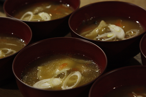 最後は、d47食堂の料理人岡竹が作った、温かな郷土料理「ひっつみ」を汁碗で試食。