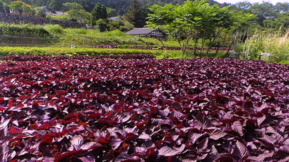 収穫したての新鮮な赤紫蘇で紫蘇ジュースをつくります。