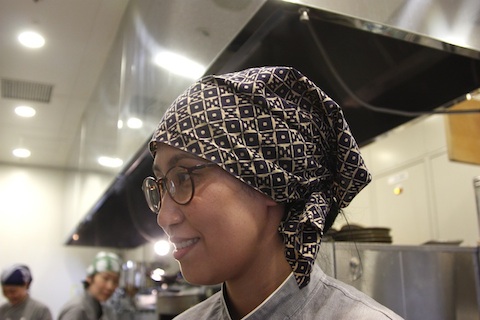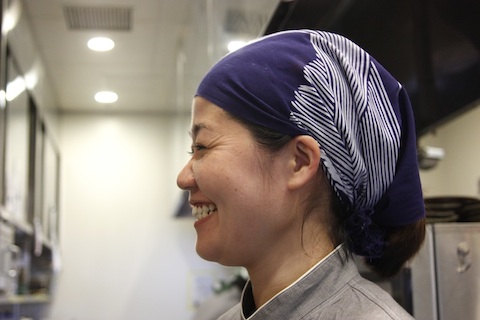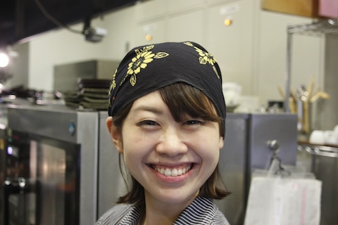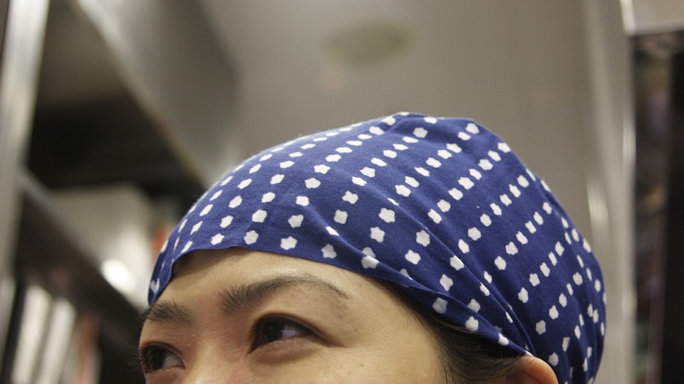 頭に巻いてみるとまた違った表情になり、束で交差するうどんの白い線が涼やかで、