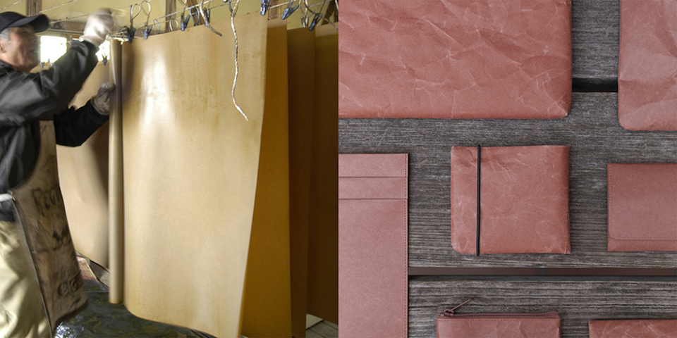 「SIWA|紙和」は、「大直」が開発した強くて破れない障子紙「ナオロン」を、くしゃくしゃにすることで生まれる風合いやその優しさを生かした日常品です。「一度残った跡は消えない」そんな紙の性質をユニークに感じた深澤さんが、折れ跡ではなく"シワ"としてデザインしました。和紙を丹念に精製し、革を縫製するように、ひとつひとつ伝統的な和紙漉きの製法で丁寧に生産。和紙のしなやかさを持ちながらも、耐久性があり、水に濡れてもやぶれにくいのが特徴。今回は、新色のテラコッタ色を中心に身の回りのものをご紹介します。