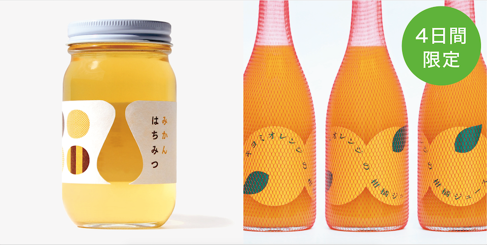 日本一のみかん産地・和歌山県有田地方でとれた「みかんハチミツ」と、「柑橘ジュース」や「はみだしうめ」を4日間限定でご紹介します。