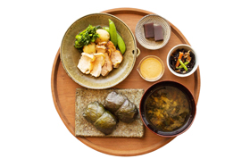 d47食堂の3月の限定メニューは「三重定食」。郷土料理の「めはり寿司」は、塩漬けした高菜でごはんを包んだもので、目を見張るほど大きかったことからその名が付けられました。熊野地鶏は、苦みのきいた熊野特産の柑橘「新姫」と胡麻をつかったソースでいただきます。三重県の美しい器と共に季節限定・数量限定の特別定食となります。県産のワインや日本酒、ジュースも揃え、胃袋から三重の魅力を感じる1ヵ月間となります。※食材の仕入れ状況によりメニューが変更になる場合があります。数に限りがあります。お早めにどうぞ。
