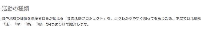 食の生産者は「つくる人」の枠を飛び越え、食や地域の価値を「伝える人」となり、私たちに、その土地の魅力を教え、そこへ訪れるきっかけをつくっています。今、全国で生まれている「食の活動プロジェクト」が、日本の「食」の「文化」「技術」「美味しさ」を残すことにつながると考えました。今回の展覧会が、各地の「食の活動プロジェクト」に参加するきっかけになればと思います。