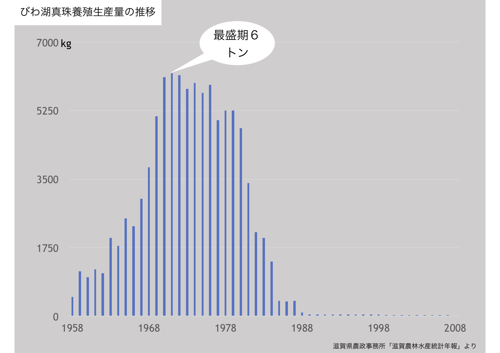 激減の理由は1988年頃に原因不明の病気で真珠をつくるための貝が大量死してしまったから。