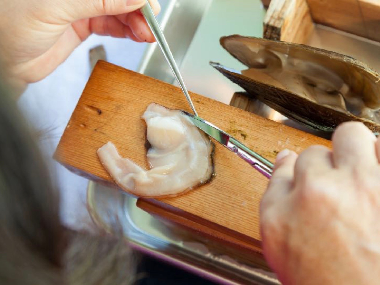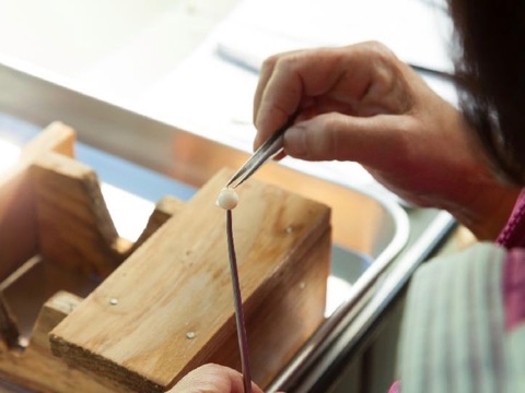 「無核真珠」と「有核真珠」の生産の仕方の違い、真珠を貝に作ってもらうために細胞を施す作業(オペ)について詳しく伺いました。