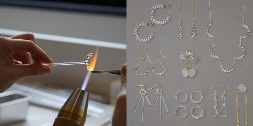 1921年、東京・神田にて理科学用のガラス器具メーカーとして創業した「HARIO」。ビーカーなどガラス器具の他、コーヒー用具や電子レンジ用調理器具など、耐熱ガラスの特性を生かした製品も幅広く製造しています。東日本大震災でガラスの原料が固まってしまったことをきっかけに、2015年、ガラス職人による手仕事の技術を後世に残していくため、全工程を手加工で行うアクセサリーブランドとして「HARIO Lampwork Factory」が設立されました。理化学用品でも使われる耐熱ガラスは、他のガラスより軽く身につけやすいことに加え、加工がしやすく細やかな職人の技を生かせる素材です。ガラスが割れたりパーツが壊れた時には、修理の依頼も可能なため、一生モノとして身につけることができます。