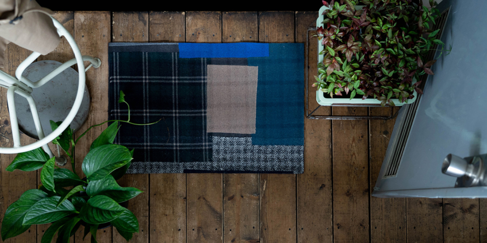 RUG FROM LIFESTOCKは、ウールの反物やハギレなどを重ね並べて構成し、ニードルパンチという技法で柄や色が混ざり合い、個性のあるオリジナルのテキスタイルに仕上げたラグマットです。