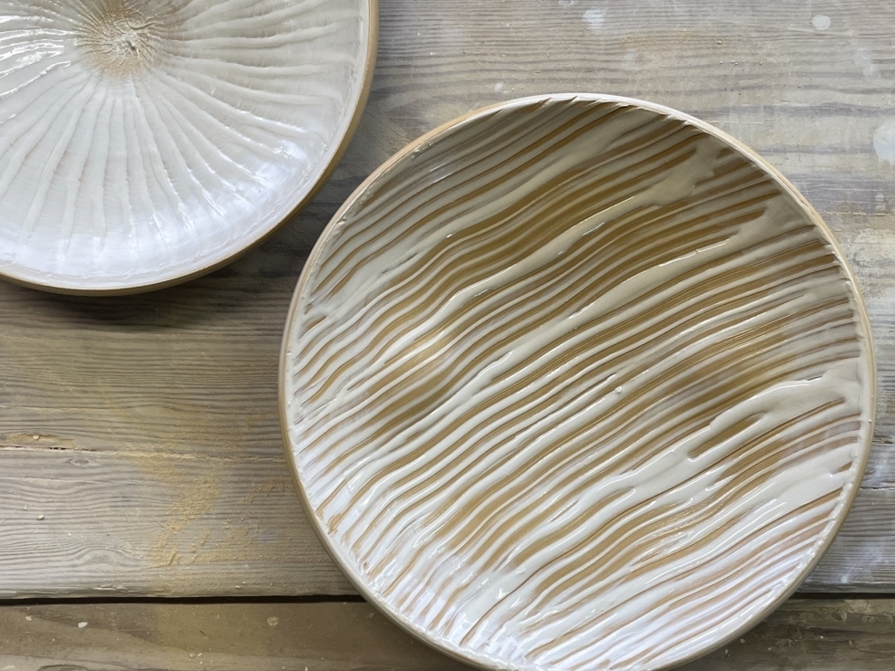 江戸時代に伊万里から陶工を招いてはじまった小石原焼は、地元の陶土を約1280度の高温で焼き締め、指描き、打ち掛け、櫛目、刷毛目、飛び鉋などの模様がある。太田哲三窯では、伝統を守り、日常づかいの器をつくり続けている。