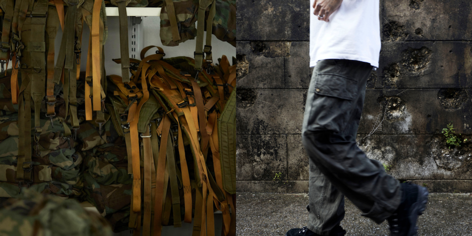 「MADE IN OCCUPIED JAPAN(占領下日本製)」とは、戦後、アメリカの統治下に置かれていた日本からの輪出品には、その表記を義務付けられていました。沖縄で世代を超えて受け継がれるものづくりをしているアパレルブランド「LEQUIO(レキオ)」は、2013年に「MADE IN OCCUPIED JAPAN(メイド・イン・オキュパイド・ジャパン)」シリーズを立ち上げ、米軍で実際に使われていたテントやモスキートシャツなどを解体、再構築してバッグやウエアを製作しています。戦争という負の遺産を、ファッションを通して平和へのメッセージに変えて後世へ伝えていく。LEQUIOの挑戦と想いが託されています。