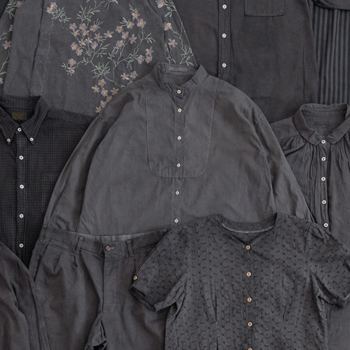 年2回(SPRING/SUMMER、AUTUMN/WINTER)は、その季節だけの「シーズンカラー」と定番「黒」「紺」の3色から染め色が選べます。そのほかにも、天然染料や個性豊かな染色技法をセレクトした特別染めも行っています。