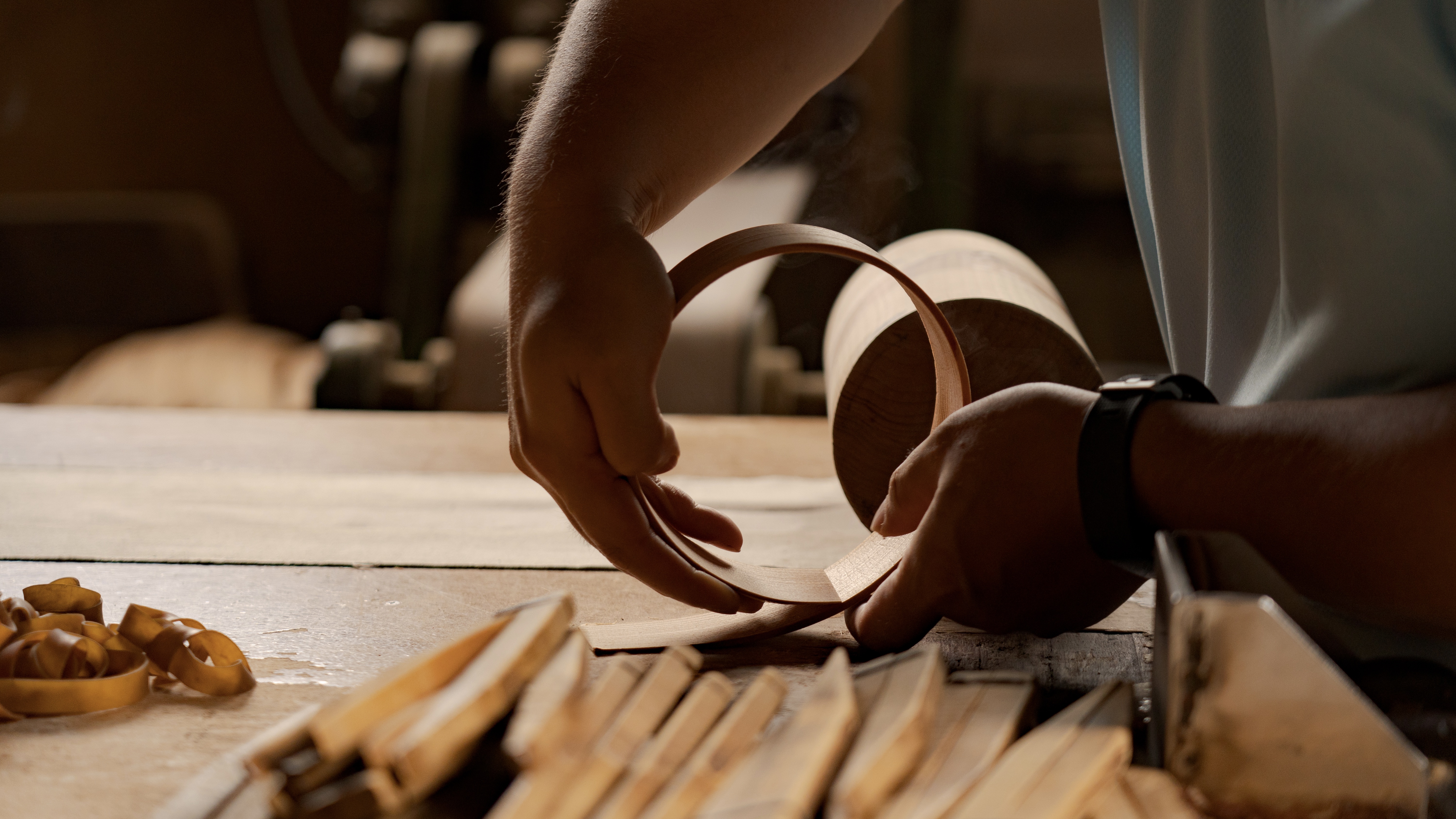 本ワークショップでは、大館工芸社代表・戸嶋一之さんと職人の皆さんをお招きし、毎日のお弁当箱として使える「丸弁当」を制作します。樹齢100年以上の貴重な秋田杉を材料に使用し、参加者の皆さんには、曲げわっぱづくりの醍醐味である「曲げ」の工程も体験していただきます。最後は職人の手によって仕上げを行い、約1ヶ月後に長く使い続けられる製品として完成した曲げわっぱをお渡しいたします。
