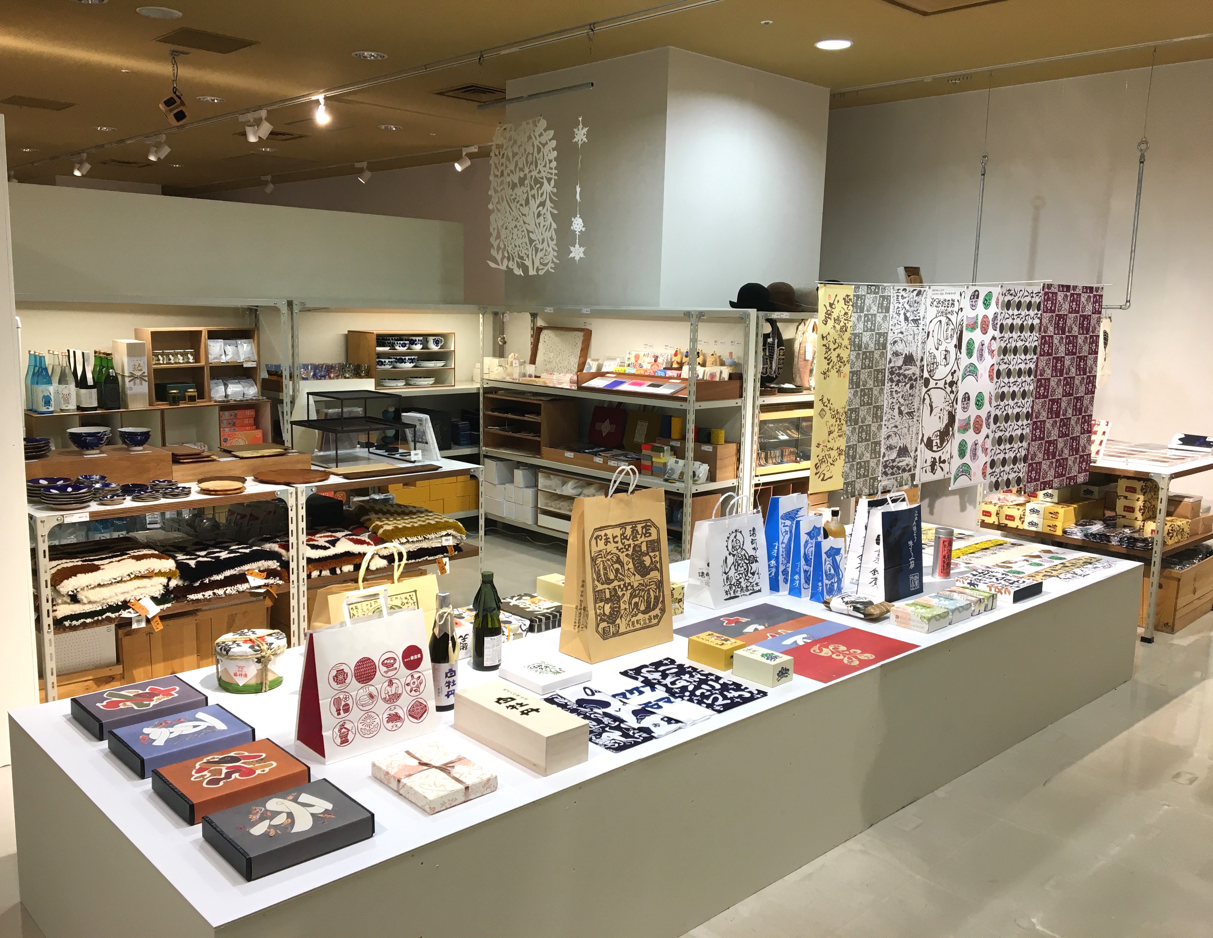 ミュージアムショップ内にて、芹沢銈介、棟方志功、柚木沙弥郎などが手掛けた包装紙やお酒のラベルといったパッケージデザインを紹介し、一部関連品を販売している特別コーナーを展開しています。