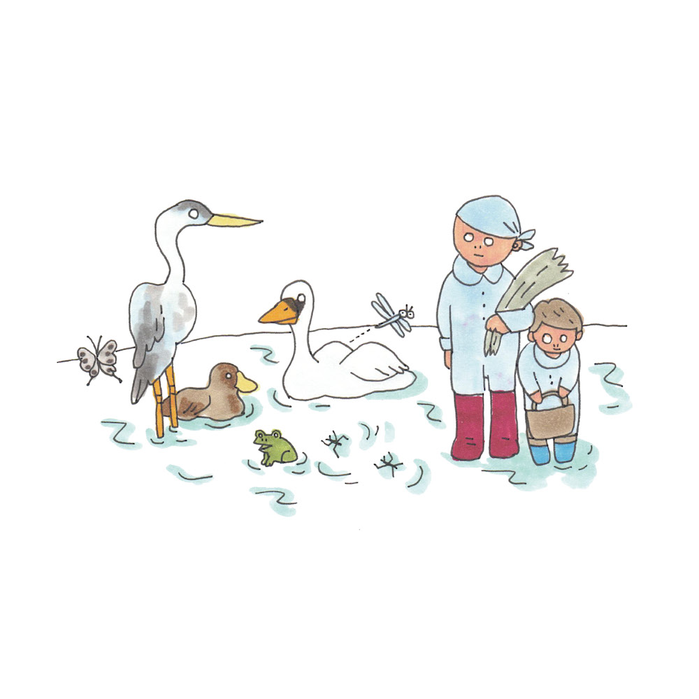 稲刈りのヘルプスタッフに200人もの応募があったことをきっかけに、田んぼを耕さずに稲を育てる「不耕起栽培」を年間を通して体験する「たそがれ野育園」を開催。機械を使わない「不耕起栽培」を伝えることで、「自分で自分の食べる米をつくれるように」との思いが込められている。2024年には約100人が参加し、年々その輪が広がると同時に、生き物たちが田んぼで生きられる環境が整う。