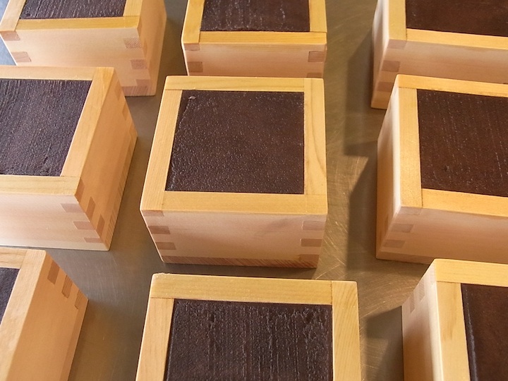 敷き詰めたあんこともち米に、檜の香りがほのかに移り、