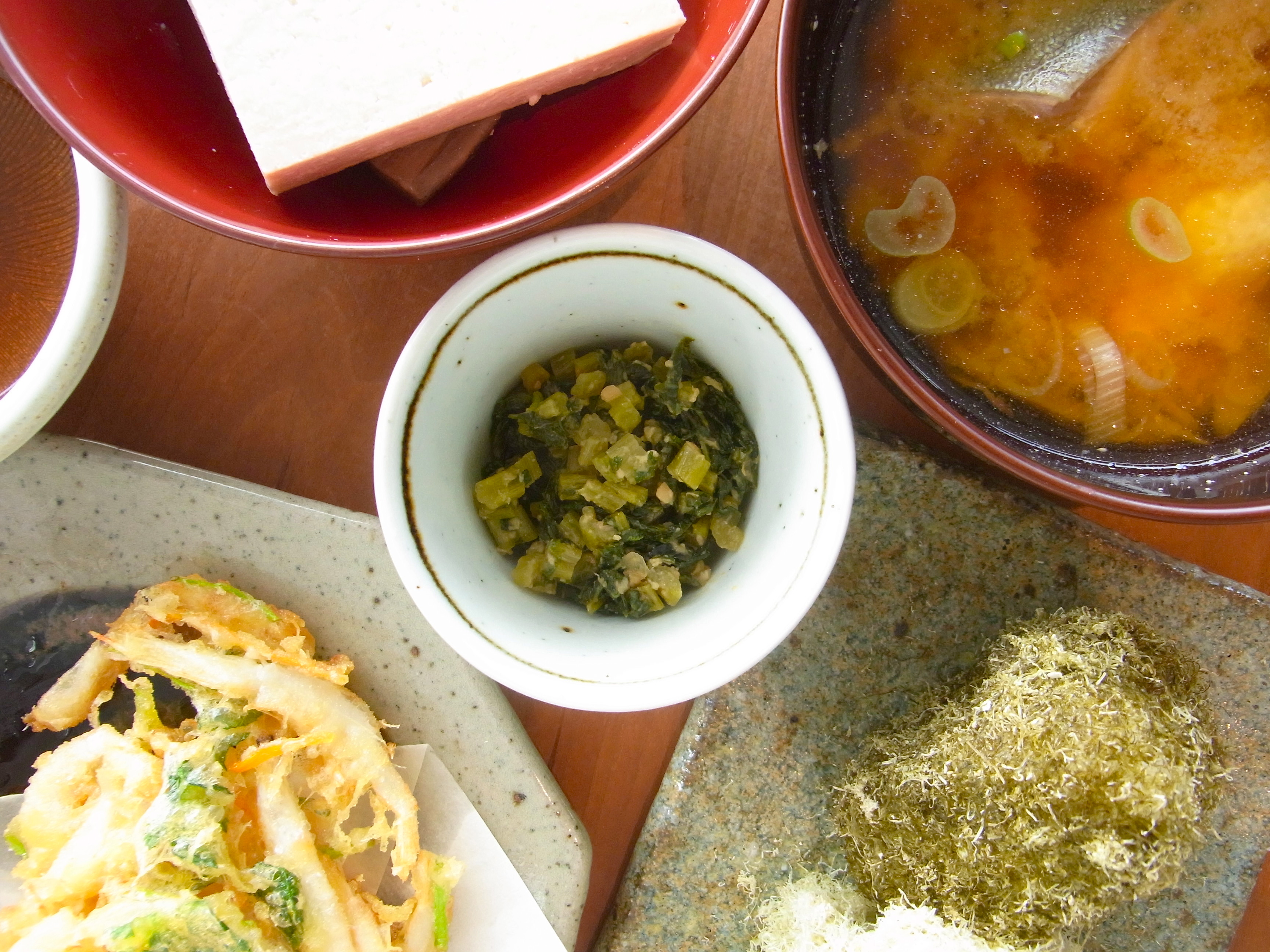 旬な野菜を炒めて味噌でよごすことから「よごし」と呼ばれる家庭郷土料理。こちらは小鉢に。