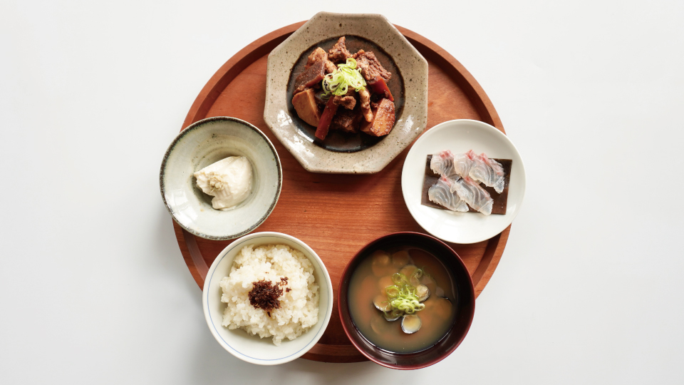 実際に現地で教わった郷土料理や、その土地で長く伝わる知恵の詰まった料理を、定食にしてご提供しています。季節を伝えるデザートやドリンクもご用意しています。生産者や器の作り手の想いものせて、お楽しみいただければ幸いです。