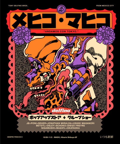 『メヒコ・マヒコ』では、雑誌『POPEYE』2019年8月号の特集「メキシコが呼んでいる!」でも案内役を務めたSmitheがデザイナーを務めるメキシコのインディペンデントストリートウェアブランド「TONY DELFINO」の日本初ポップアップショップを展開。Tシャツ、ハット、ジャケットなどのアイテムを販売いたします。