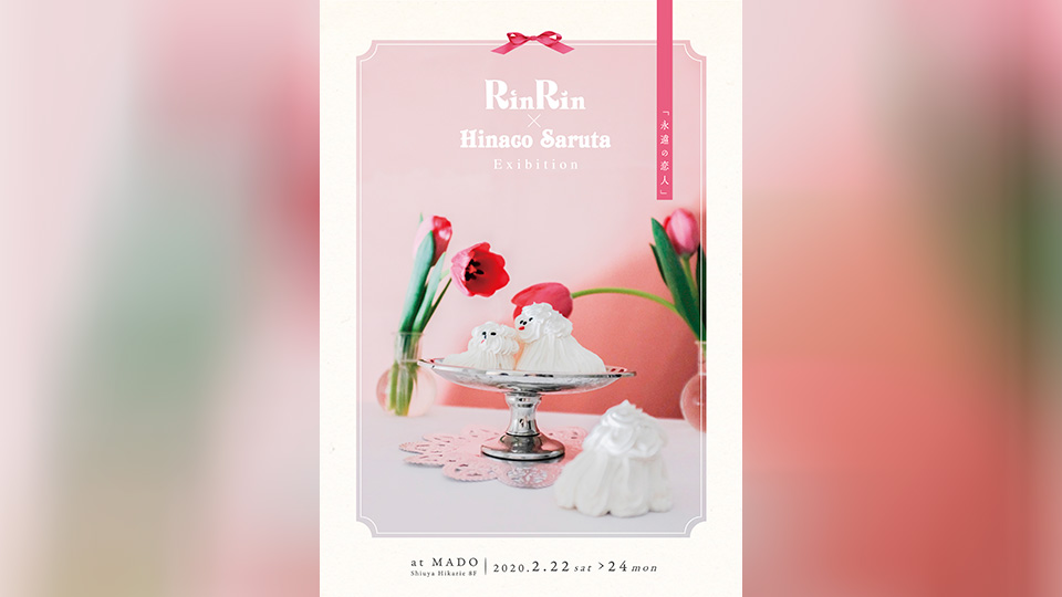 RinRin×Hinaco Saruta Exhibition 『永遠の恋人』 RinRin(永原真夏、李潤希)、 猿田妃奈子 会 期 2020年2月22日(土) - 2020年2月24日(月) 時 間 11:00 - 20:00 場 所 MADO 料 金 入場無料(ミニライブは要予約) 事前申込 https://rinrinxhinacosaruta.peatix.com 雑貨ブランド『RinRin』が作家の猿田妃奈子さんとコラボレーションした雑貨の展示&販売会。『RinRin』の永原真夏さんによるミニライブも SEBASTIAN Xのヴォーカル・永原真夏さんとデザイナーの李潤希さんがディレクションを務める雑貨ブランド『RinRin』が、作家の猿田妃奈子さんとのコラボレーション雑貨を発表しました。 タイトルは「永遠の恋人」。恋の美しさだけではない部分を、スウェットやトートバッグ 、鏡、ポスター、ZINEといった雑貨に落とし込み表現しています。 今回のコラボレーションの発表に伴い、2/22(土)〜2/24(月、祝)にMADOにて雑貨の展示&販売会を開催いたします。 22、23日には永原さんによるミニライブも開催予定。 詳細・お申し込みは下記をご確認ください。 RinRin×Hinaco Saruta Exhibition 『永遠の恋人』 日程:2020年2月22日(土) 〜 2月24日(月、祝) 時間:11:00〜20:00 RinRIn Instagram|Twitter ▼永原真夏ミニライブ 2020年2月22日(月)、23日(日) 19:30 開場/20:00開演 ticket ¥1000 ※両日30名様限定、先着順 申し込み:https://rinrinxhinacosaruta.peatix.com/