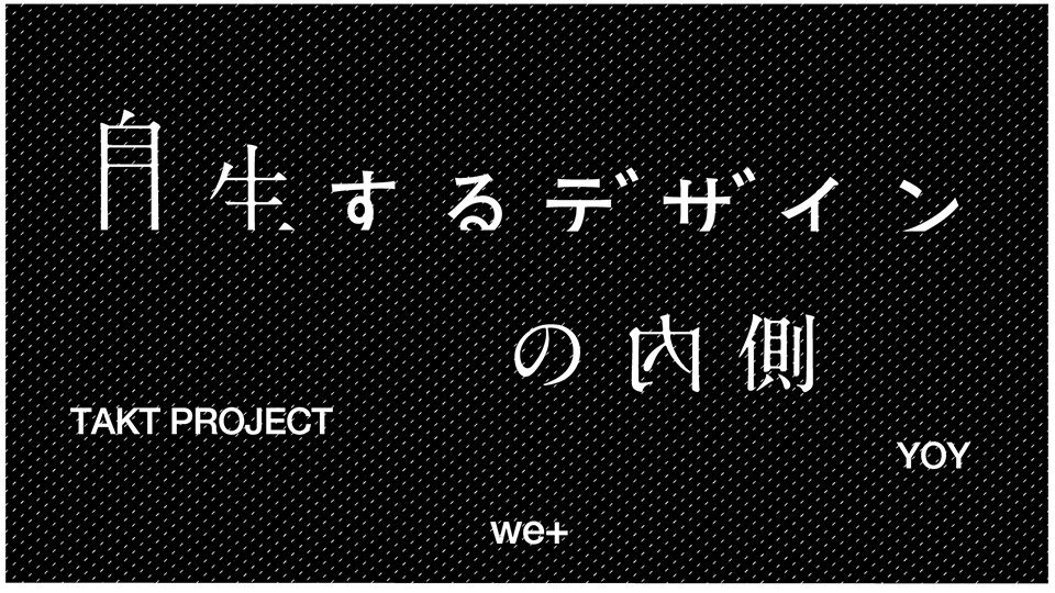 「自生するデザインの内側」と題したこの展覧会では、TAKT PROJECT、we+、YOYの三組のデザインスタジオ、それぞれの「自生(=受注を前提としないデザインのあり方)」に対する姿勢や考え方を、今年のミラノデザインウィークで発表した作品の制作プロセスと合わせて展示します。