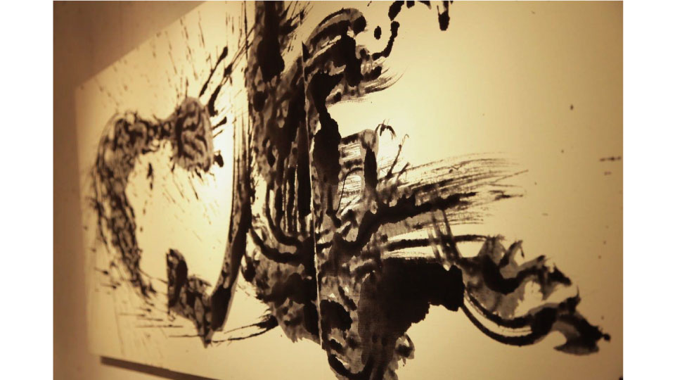 壁を覆うほどの大きな作品から、テーブル上の作品まで多様な作品を展示・販売するとともに、会場で書道の創作・レッスンを体験することができます。