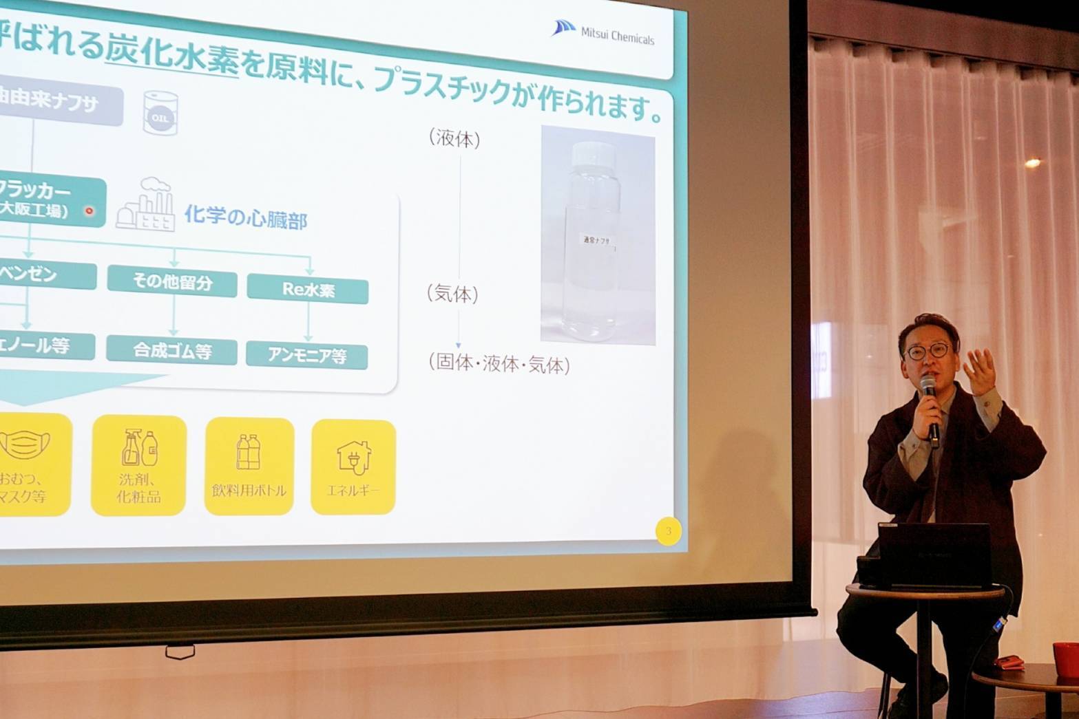松永:三井化学はプラスチック材料や化学品を作っている会社です。様々なプラスチック問題がある中で、プラスチックを素(もと)から変えていく取り組みが今スタートしています。その辺を中心にお話しします。