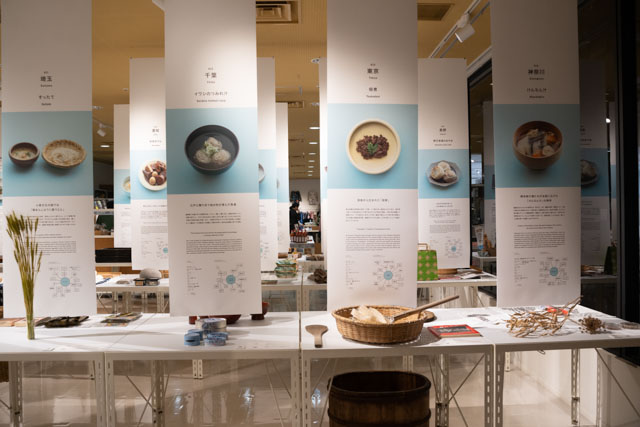 『NIPPON UMAMI TOURISM』では、日本の各地域に根付く「郷土料理」を、「UMAMI」という海外の方にも伝わるキーワードで、料理が生まれ愛され続けた背景、その食文化を守るのに大切な道具、活動、商品などを共に展示し、緩やかに繋がる日本の文化や、各地域の魅力を紹介していました。