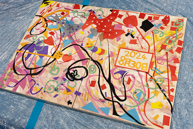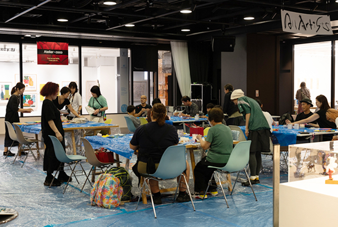 フロア中央部イベントスペース「COURT」では、あらゆる人のアート性をサポートする「世界ゆるアート協会」による、『All Artists きみがアーティストになる日!』が開催されていました。この日は「ペタペタ画」のワークショップの日。子どもから大人まで、夢中になってものづくりを楽しむ様子が垣間見られました。