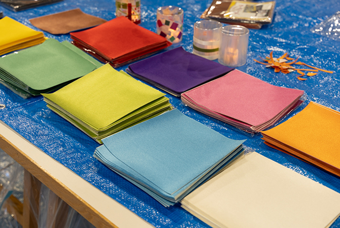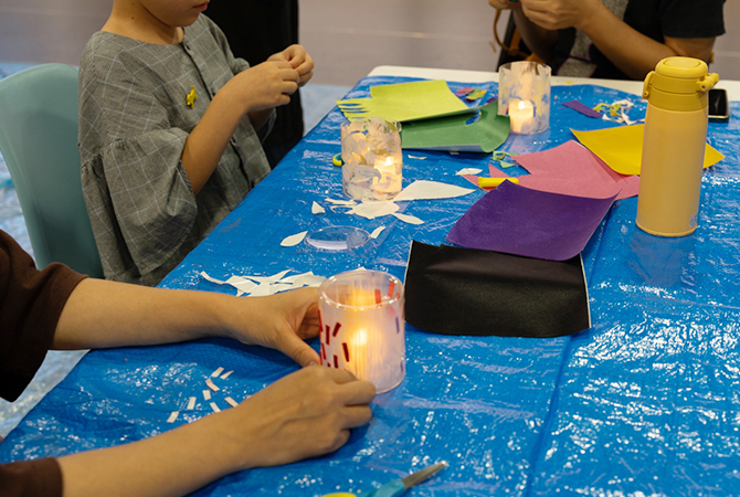 また、このシートを切り貼りしてオリジナルキャンドルライトをつくるワークショップも同時に開催。