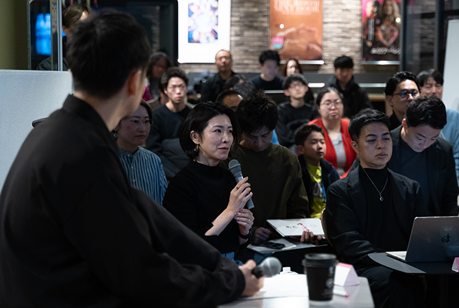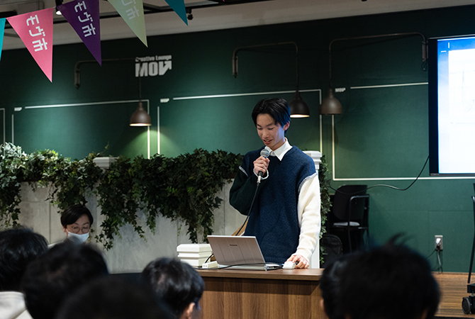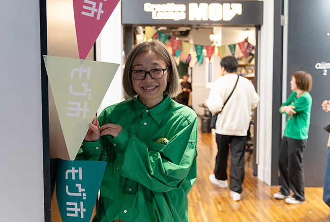 「『登龍モヴ』という場は、自分たちの考えを伝えたり、サポートしてくれる人と出会える機会になっています。それだけでなく、MOVを1年間利用できる権利や、審査員のアドバイスをもらえるチャンスも1度得られます。COURTでは、商品や作品・サービスを実際に販売したりPRできるブースが並び、MOVメンバーのOBOGを含む皆さんが出展しています。MOV市を通して、多くの人がMOVと関わる機会を楽しんでほしい」とMOVの太田温子店長。