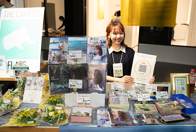インドやパリなどの旅での体験をフォトエッセイにした作品を販売する穂波青さんのブースや
