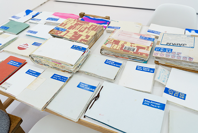 会場には、作品とともに、せつさんの1年にわたる世界旅行のはじまりの記録から、さまざまな旅の記憶が展示されていました。