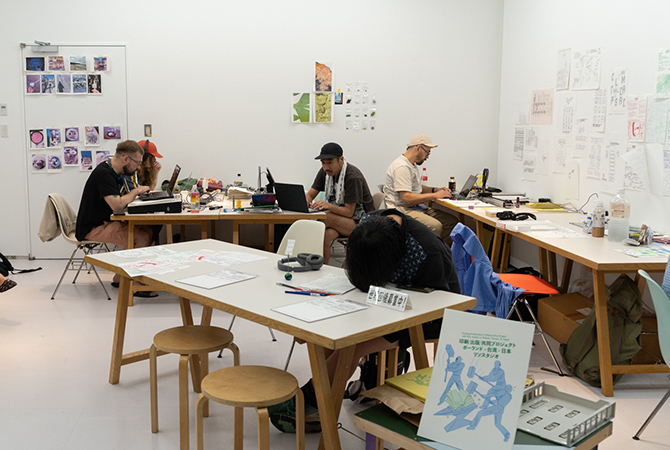 一方、隣のCUBEでは、ポーランド、台湾、日本のスタジオからアーティストが集まり、イベント期間中に共同でZINEを制作するという公開出版プロジェクトが行なわれていました。