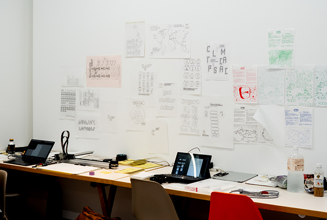絵文字からヒントを得たデザインをドローイングマシーンで複写していく手法でZINEを制作していました。