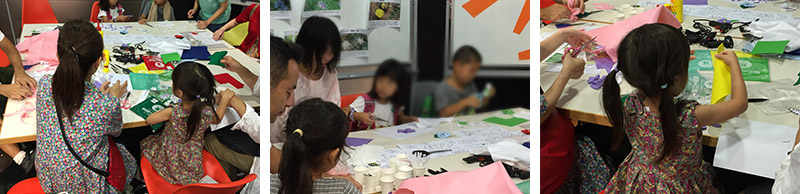 たまたま通りかかって親子で参加されたというSさん。日ごろはモノづくりをする機会がないそうですが、パパと一緒に型に沿ってフェルトをカットし、黙々と手を動かすうち……「できた!」とかわいらしい声が。その手には、ヒメフウロという山野草をモチーフにした紫色のストラップが握られていました。中には、敢えて型を使わずに細かなあじさいの花弁を切り抜く女の子の姿も。子どもたちの可能性は、無限にふくらんでいくのでした。